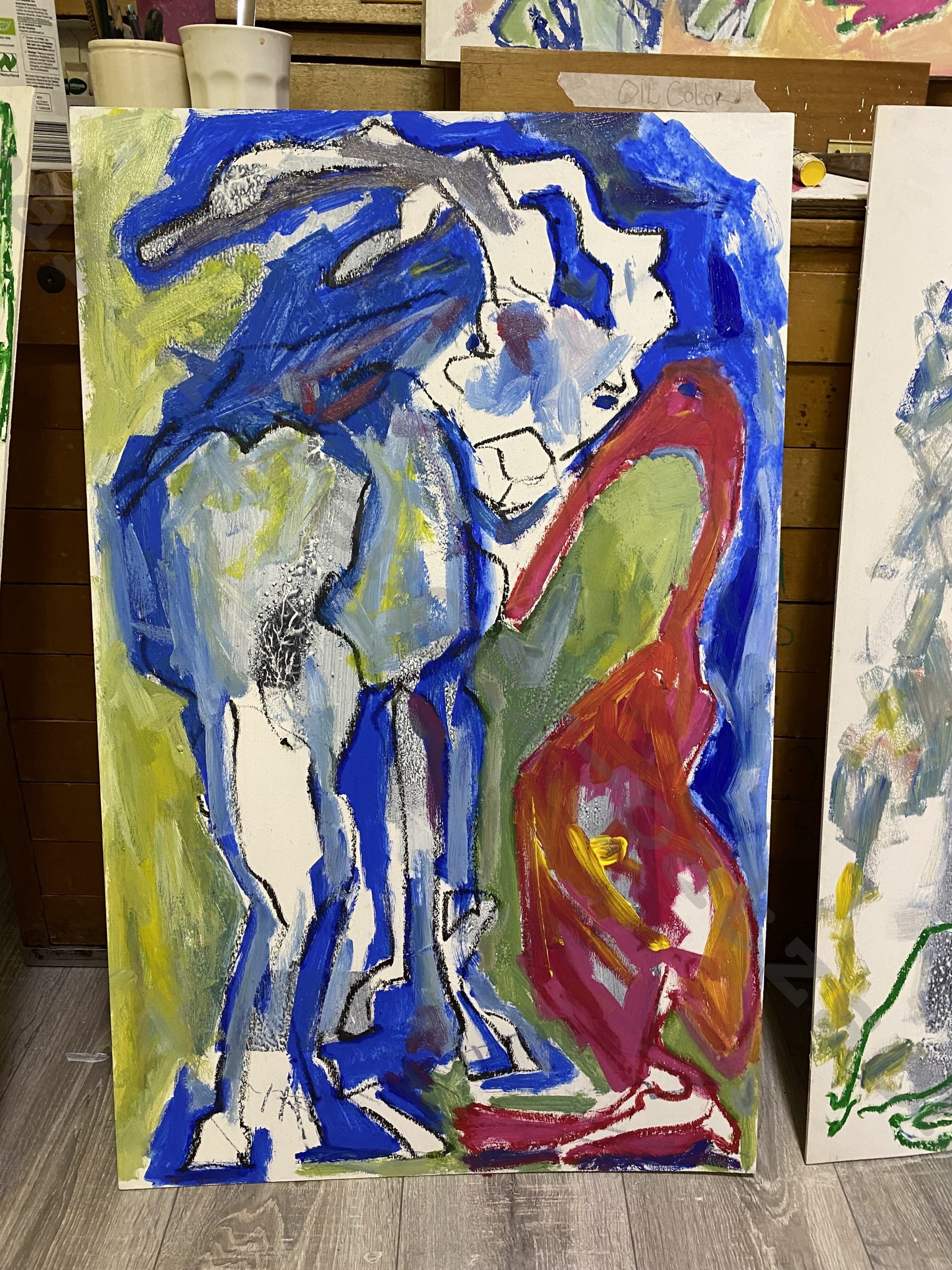 For about five years, she has deliberately refrained from using modern, petroleum-based materials such as acrylic or plastic. Instead, she has turned to traditional painting techniques, a conscious decision to counter the age of petroleum. She works with natural pigments, mineral binders, and historical techniques that are not only more ecologically sustainable but also possess a unique, timeless aesthetic.
