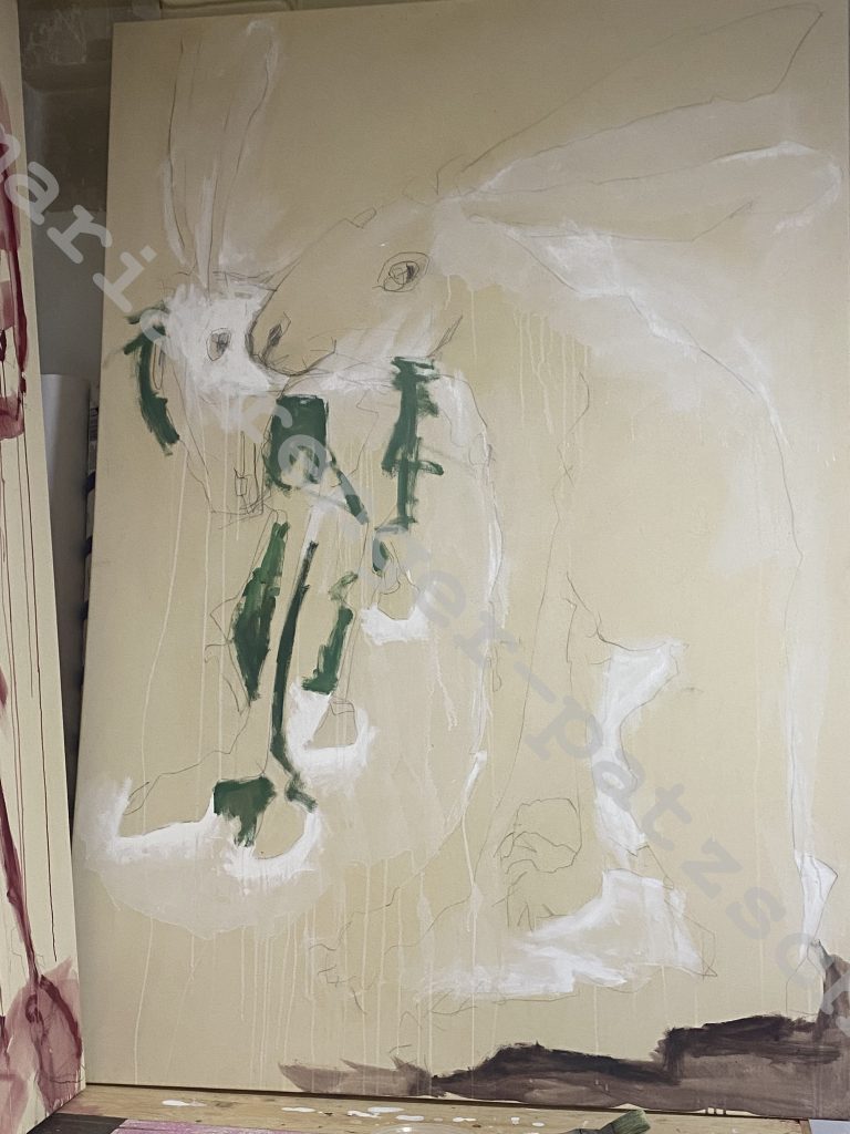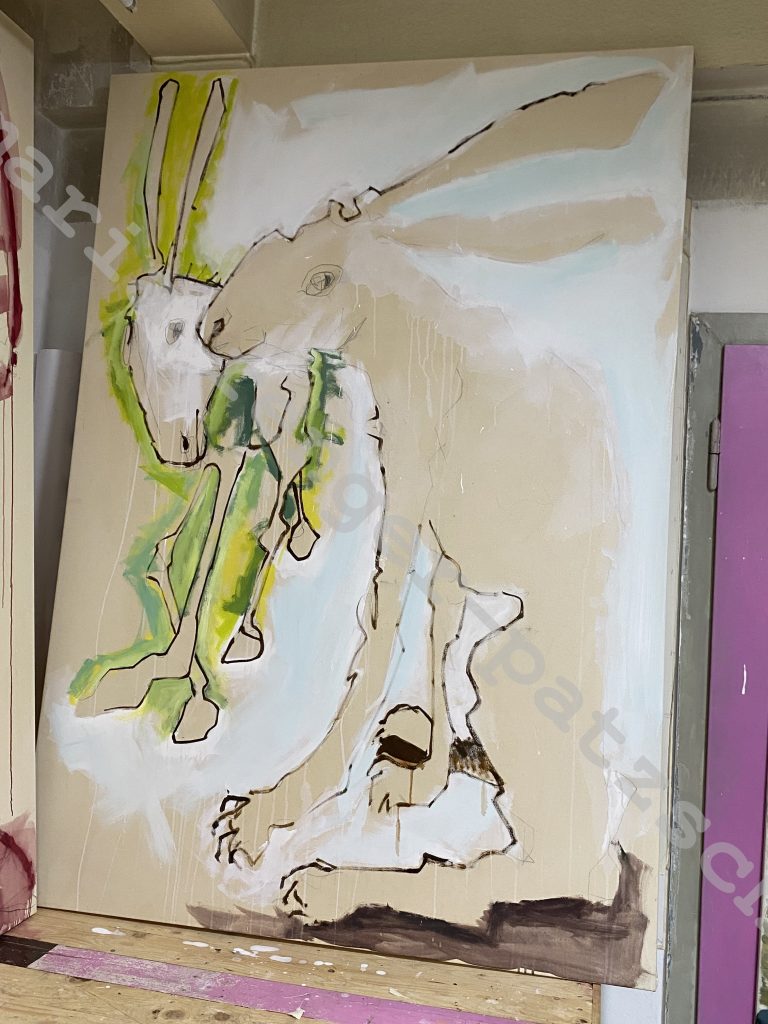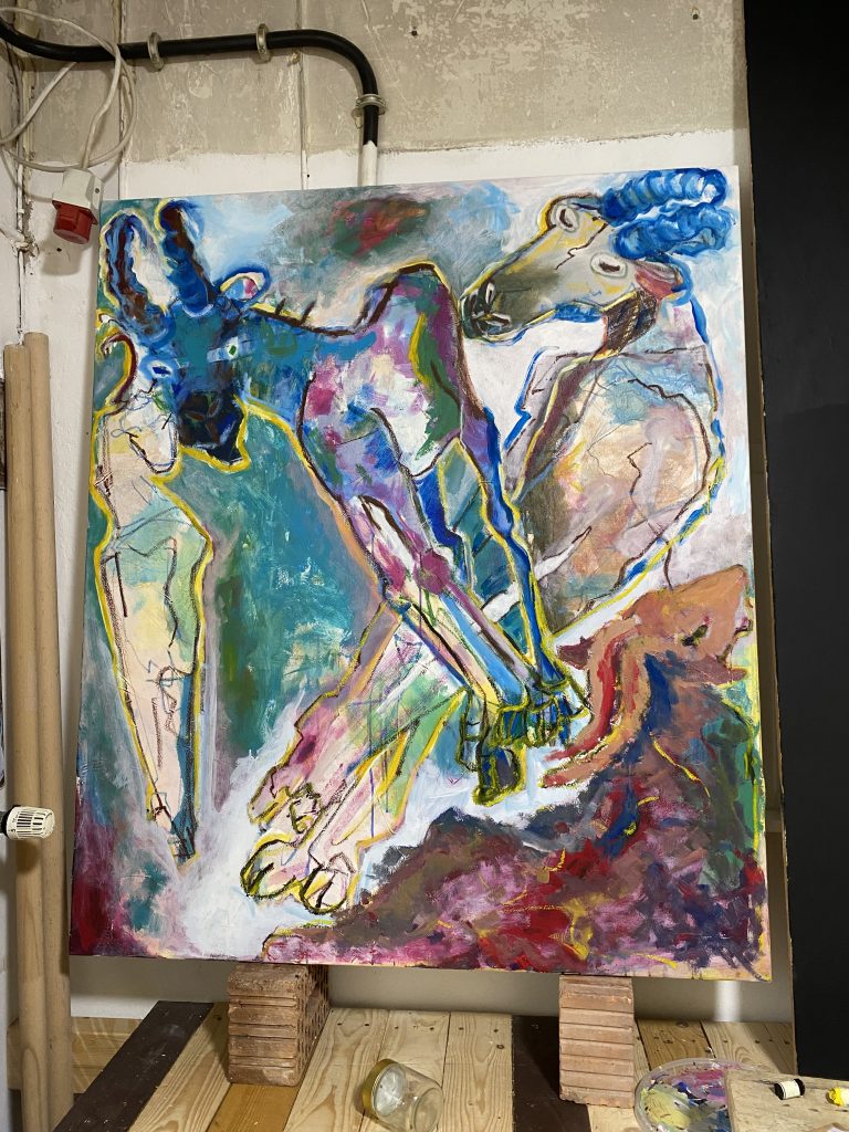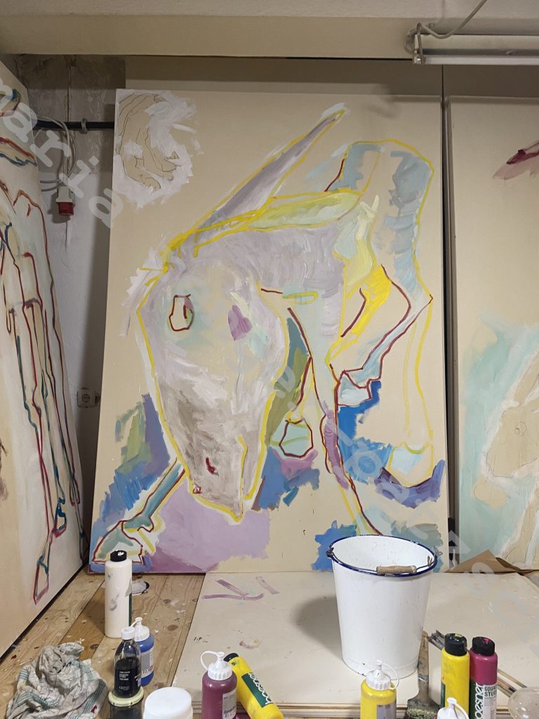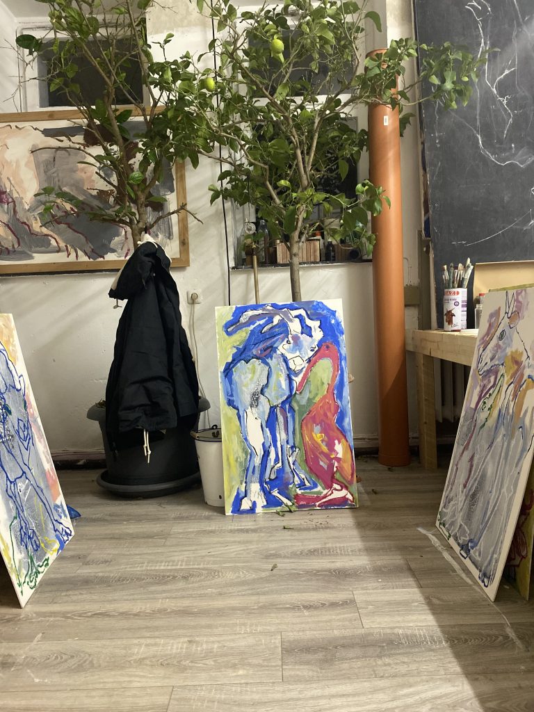 The miners' cows and the runner ducks take form here, and something new begins to emerge. It is as if the earth itself longs to reveal its presence. Along with it, other artists step into the studio to paint together. One of them tells of a bread factory in Gelsenkirchen that is opening its doors to artists.