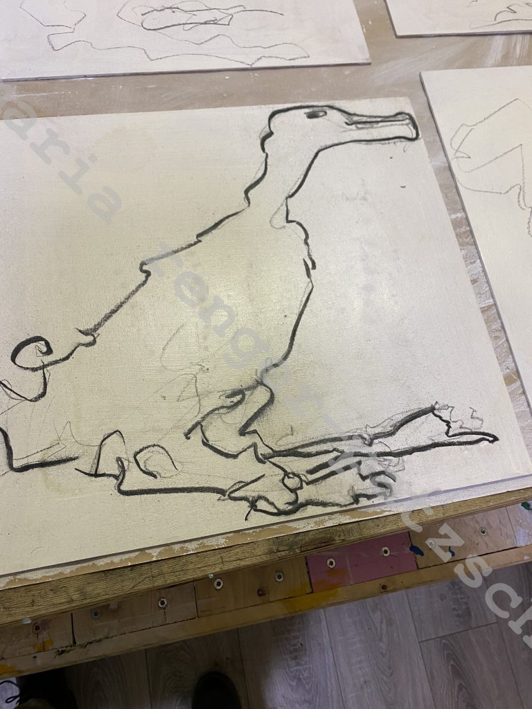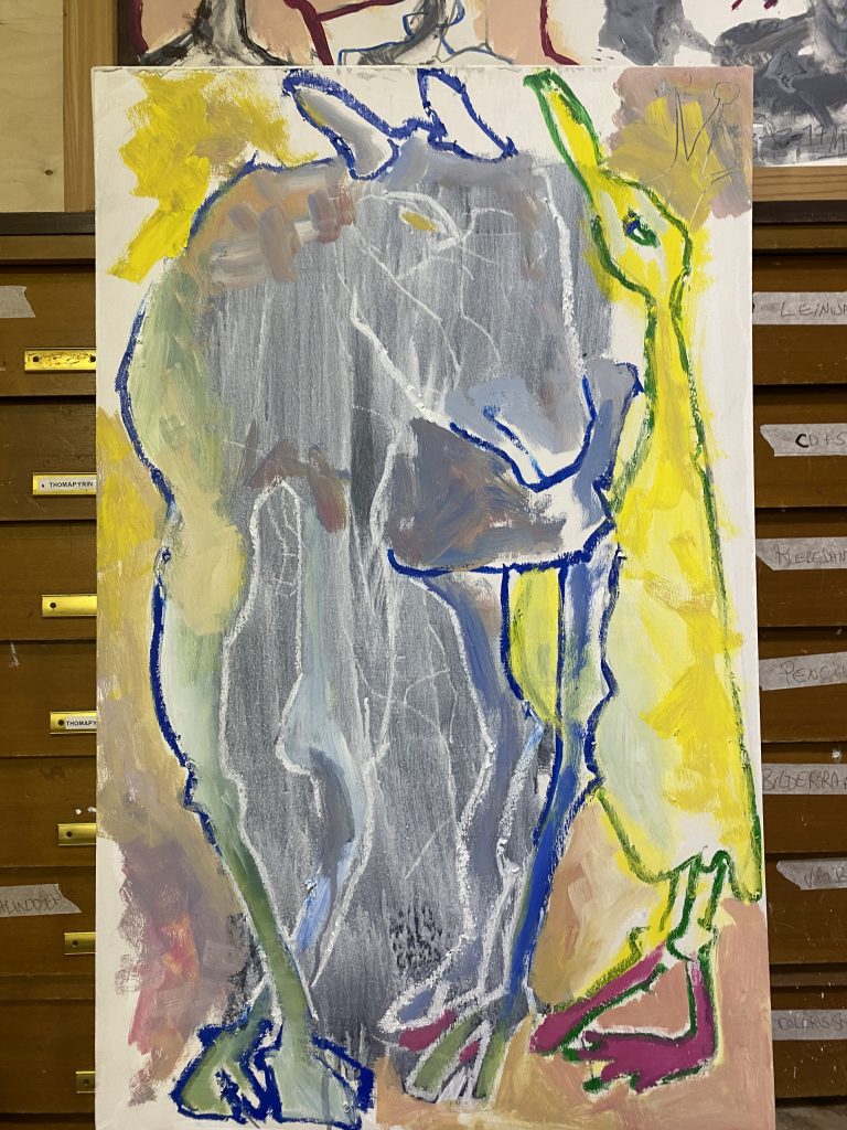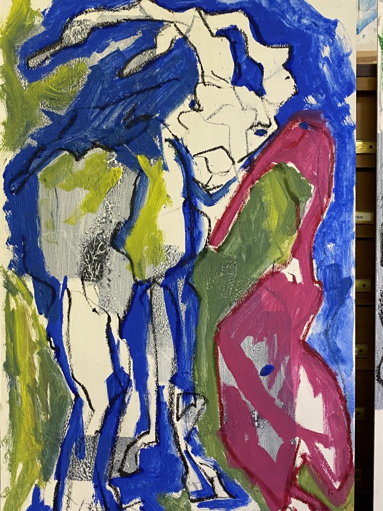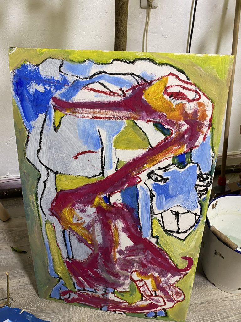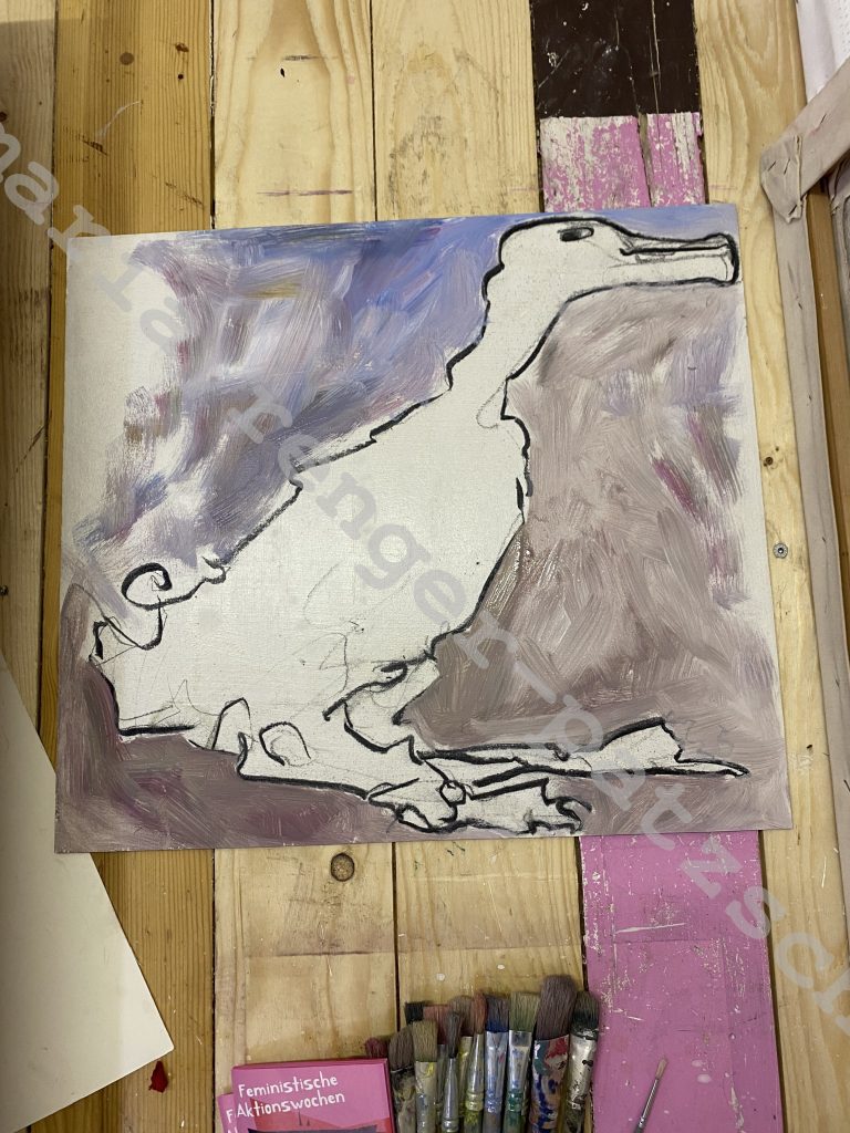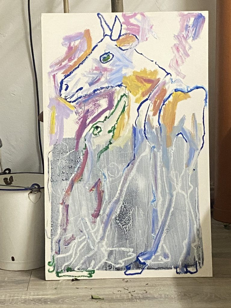 The miners' cows and the runner ducks take form here, and something new begins to emerge. It is as if the earth itself longs to reveal its presence. Along with it, other artists step into the studio to paint together. One of them tells of a bread factory in Gelsenkirchen that is opening its doors to artists.